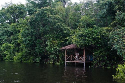 "Tsam Tsam, a pioneering eco-tourism initiative by OELO NGO on Lake Oguemoué, co-founded by Cyrille Mvele and Heather Arrowood, fosters sustainable development through biodiversity conservation, community engagement, and tourism revenue to support further projects."